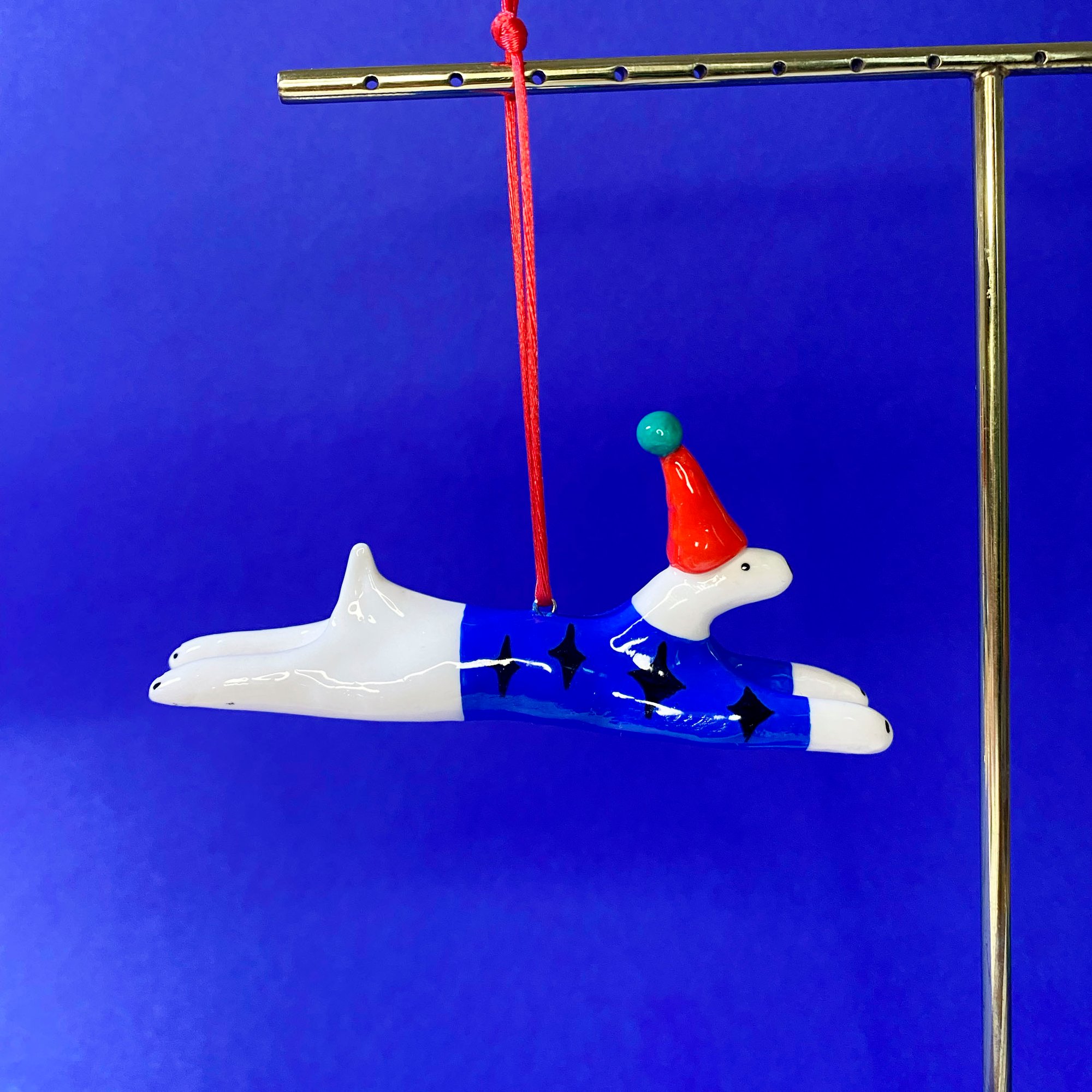 The Magic Dogs Ornaments are handcrafted decorations made from polymer clay and finished with UV resin for durability and shine.