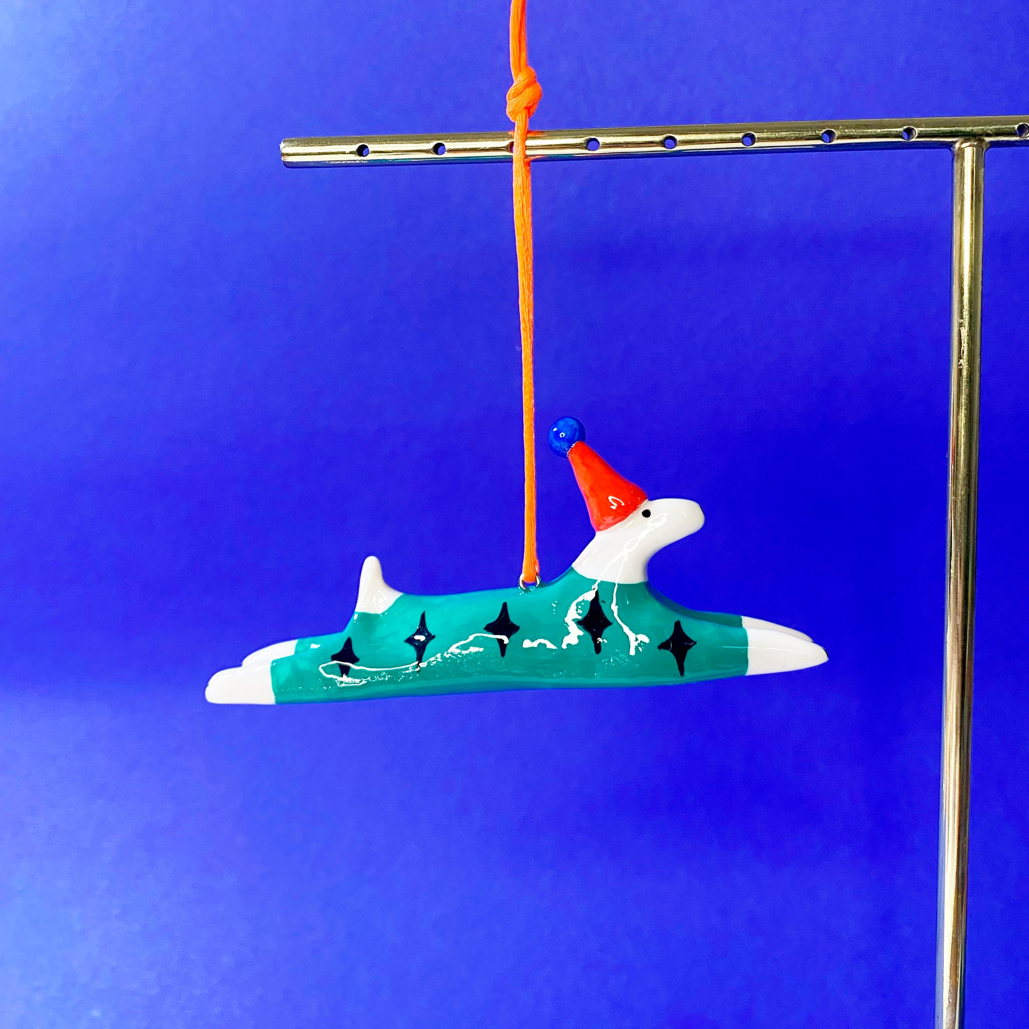 The Magic Dogs Ornaments are handcrafted decorations made from polymer clay and finished with UV resin for durability and shine.